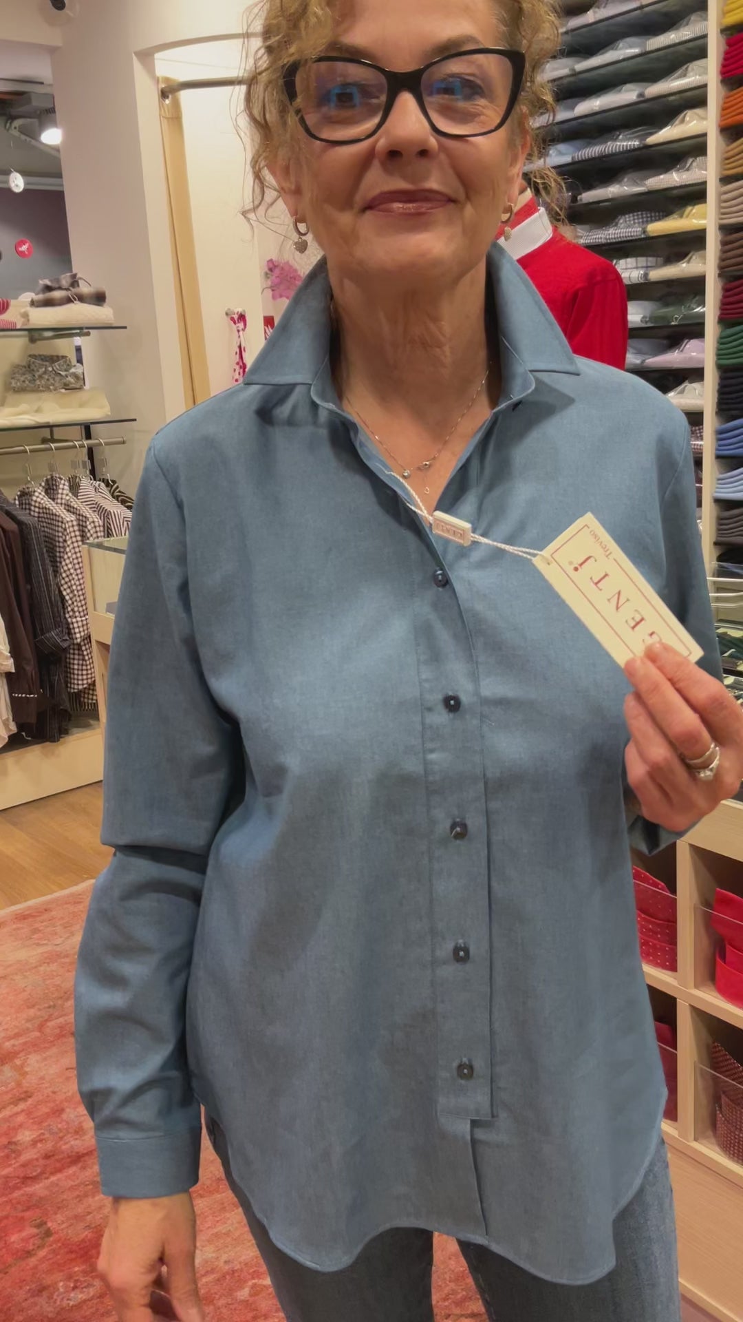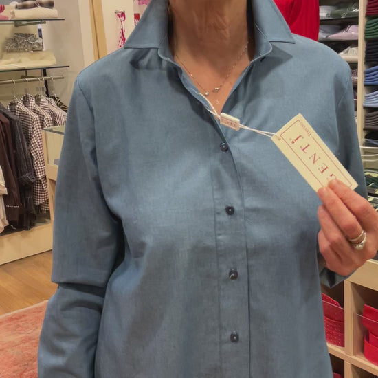 Morbidissimo denim di cotone per questa camicia dal taglio facile e classico