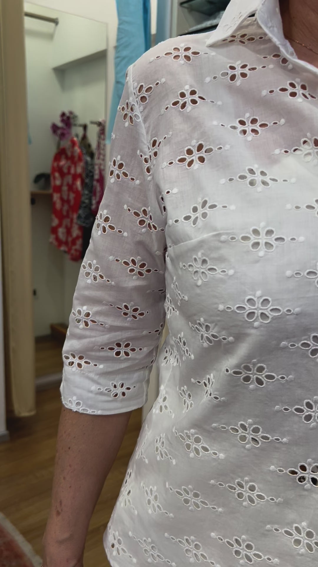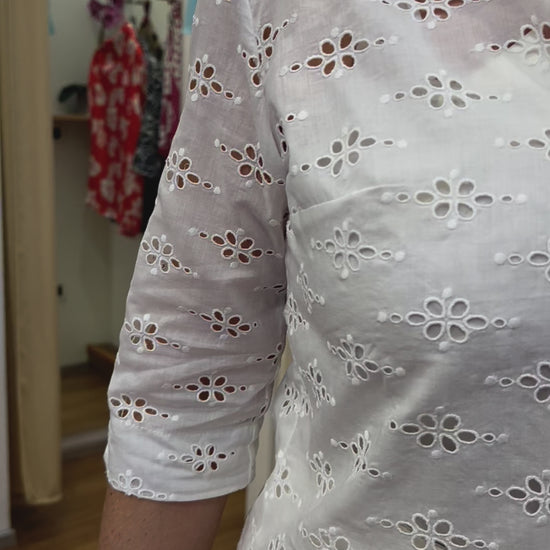 Deliziosa nella sua semplicità questa camicia nell’ intramontabile sangallo principe.